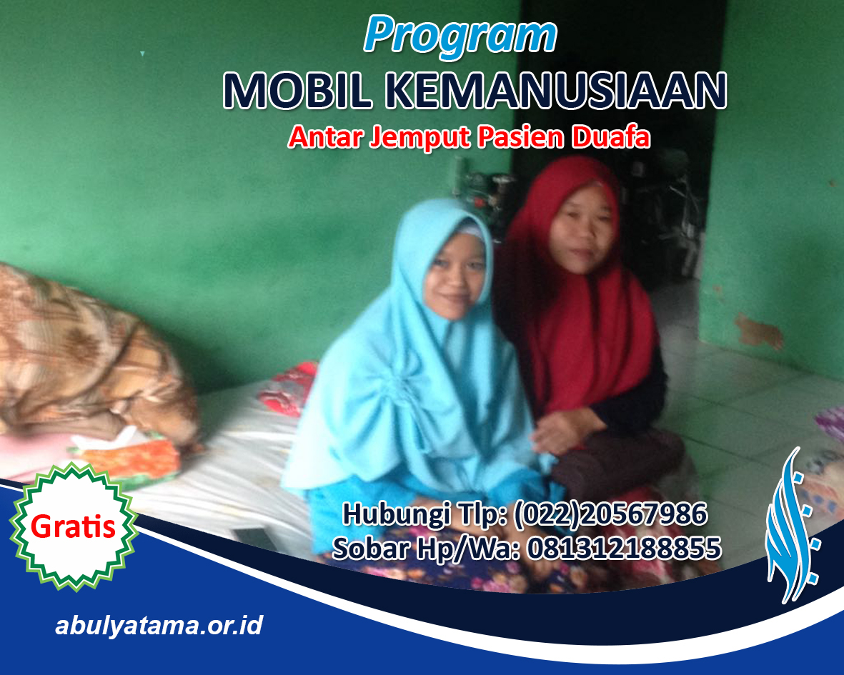 Alhamdulillah Tim Mobil Kemanusiaan Yayasan Abulyatama Indonesia Telah melaksanakan antar jemput pasien Duafa pada hari Rabu Tgl 25 April 2018 Ke Daerah Sukabumi Atas Nama Pasien : Novi Yulianti Alamat Kp.Ciwangun RT/02/07 Desa Wangunreja Kec.Nyalindung Kab.Sukabumi. Semoga Sakitnya jadi penggugur Dosa dan peningkat Derajat. Terima Kasih Kepada Para Donatur dan Para Alumni PPA Se Indonesia yang telah berpartisipasi dan berkontribusi sehingga terlaksananya Program Mobil Kemanusiaan dengan Lancar, Semoga Allah membalas semua kebaikan dengan yang lebih Baik Aamiin...