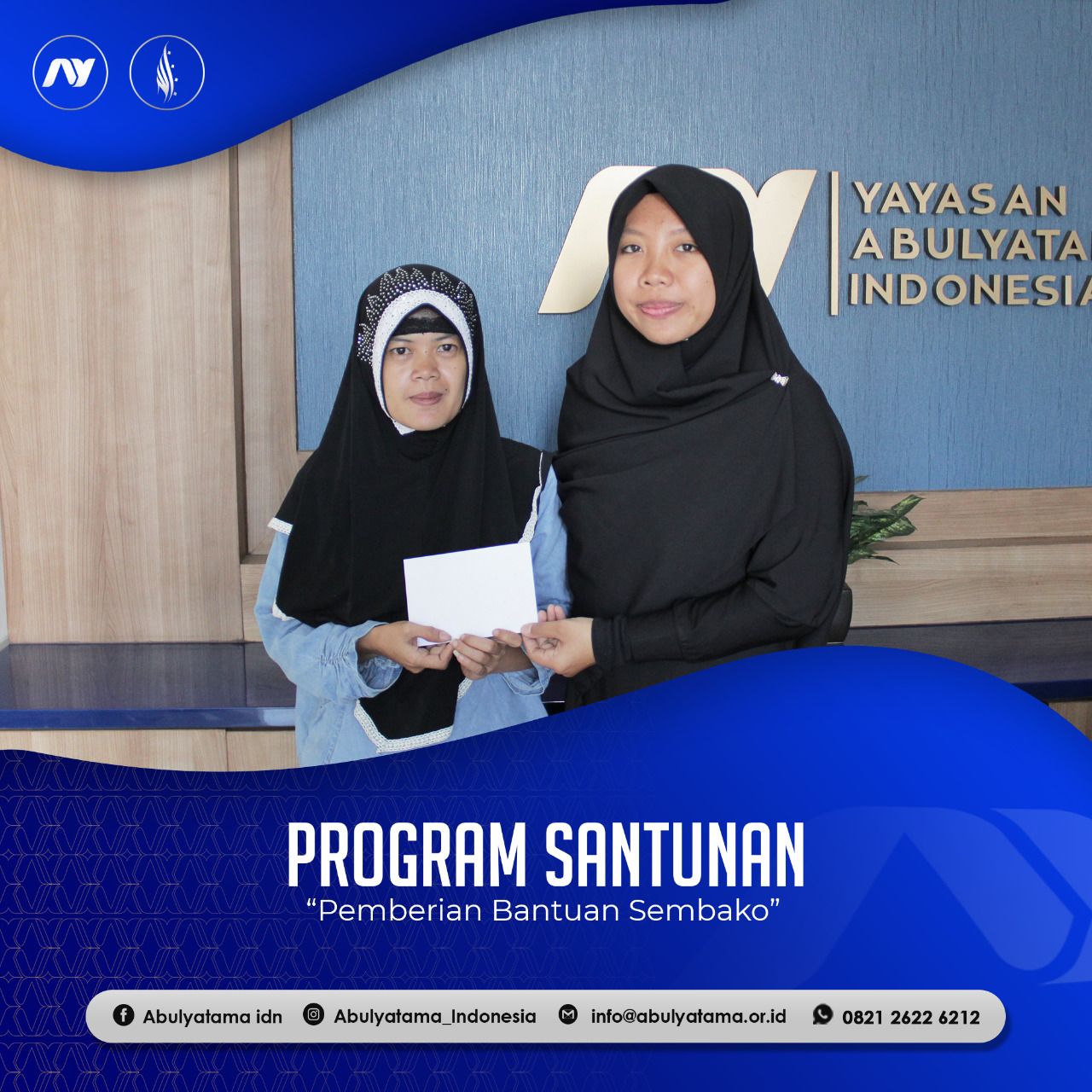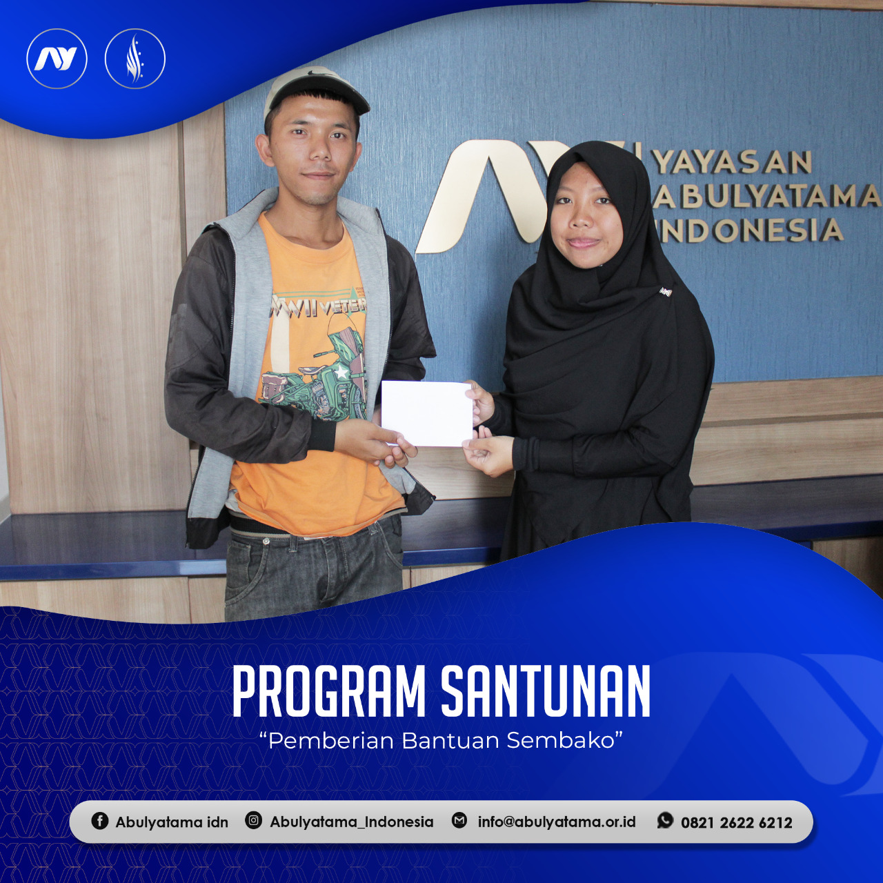 Senin (14/10), Alhamdulillah Yayasan Abulyatama Indonesia telah menyerahkan santunan bantuan kebutuhan sembako berupa uang kepada Bapak Deni R., Ibu Ilah Sumirah, Ibu Ifah Hanifah warga Bandung. Program santunan ini diberikan kepada kaum dhuafa untuk membantu meringankan beban hidup khususnya kebutuhan utama yaitu kebutuhan sembako.