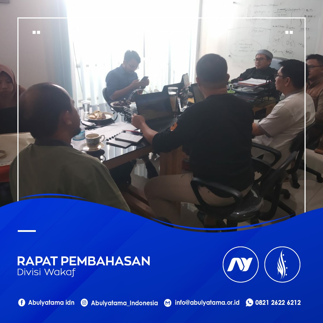 Alhamdulillah pada Hari Jum’at, 3 Januari 2020, telah dilaksanakan Rapat Pembahasan Divisi Wakaf. Hal ini merupakan lanjutan dari hasil Raker Yayasan Abulyatama Indonesia beberapa waktu lalu. Bertempat di kantor Yayasan Abulyatama Indonesia, rapat ini diikuti oleh jajaran Pengurus yang terdiri dari Yudi Hadiansyah (Ketua), Sudarmanto (Sekretaris), Kamaludin Syakir (Bendahara). Juga dihadiri Mia Nurdiana (Plt. Kepala Harian), Bagoes Chandra Wanto (Bagian Pendayagunaan, serta perwakilan dari Simpul Berkah Sinergi (SBS) yaitu Dedi Syahrul dan Maradoli Matondang.