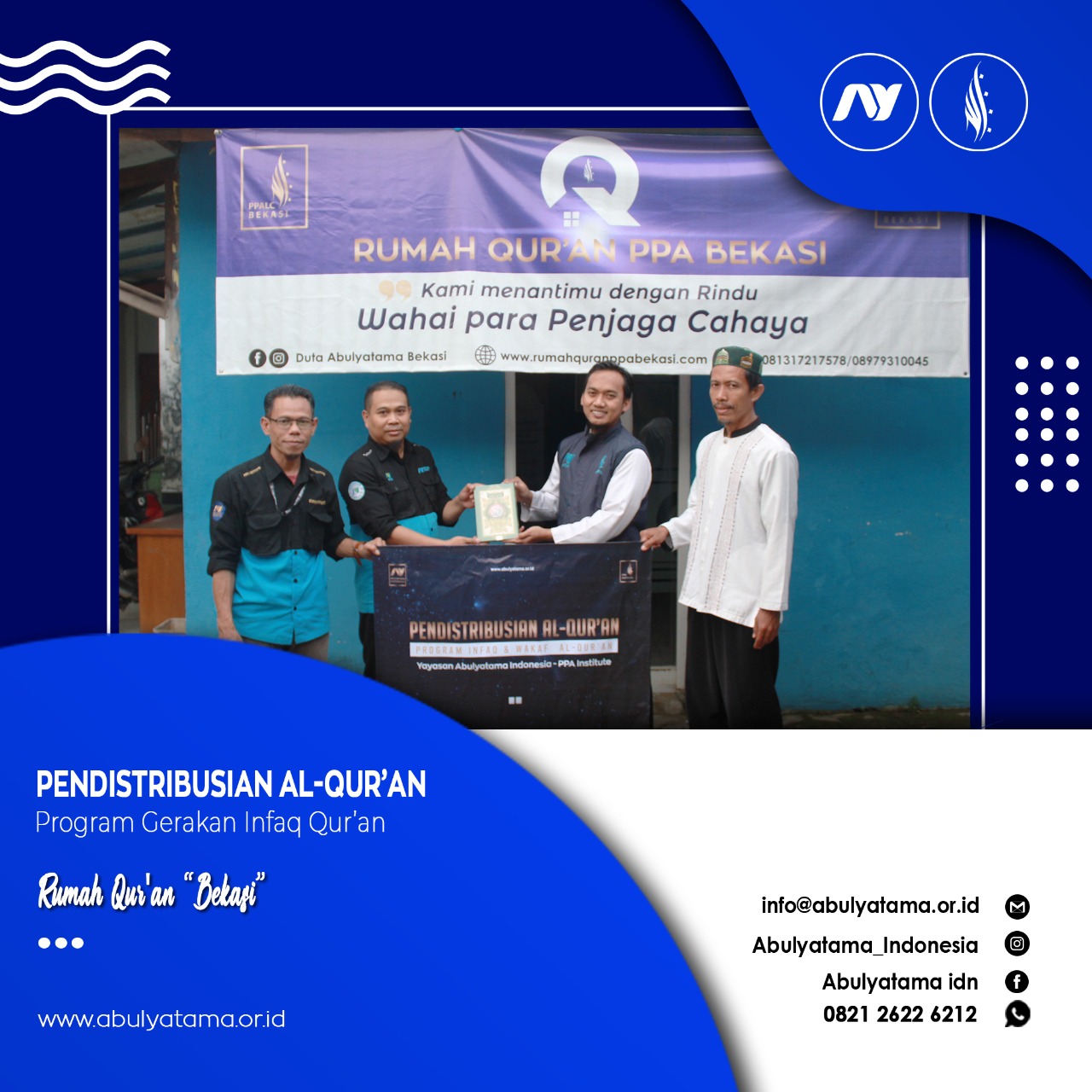 Pendistribusian Al Qur'an ini merupakan penyaluran infaq yang telah terkumpul dari Program Gerakan Infaq Al-Quran Yayasan Abulyatama Indonesia, untuk generasi yang berilmu dan berakhlak Qur'ani, yang saat ini tengah berlangsung.