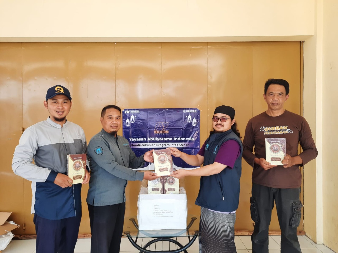 Dalam pendistribusiannya, diwakili oleh Pak Taskam Muhaemin (Supervisor Rumah Qur'an PPA dan Huffazh Online) serta Pak Ismail Saleh (Kepala Divisi Pendayagunaan). Adapun tujuan pendistribusian mushaf Qur'an ini kepada YAI Cabang dan Rumah Qur’an yang tersebar di penjuru negeri.