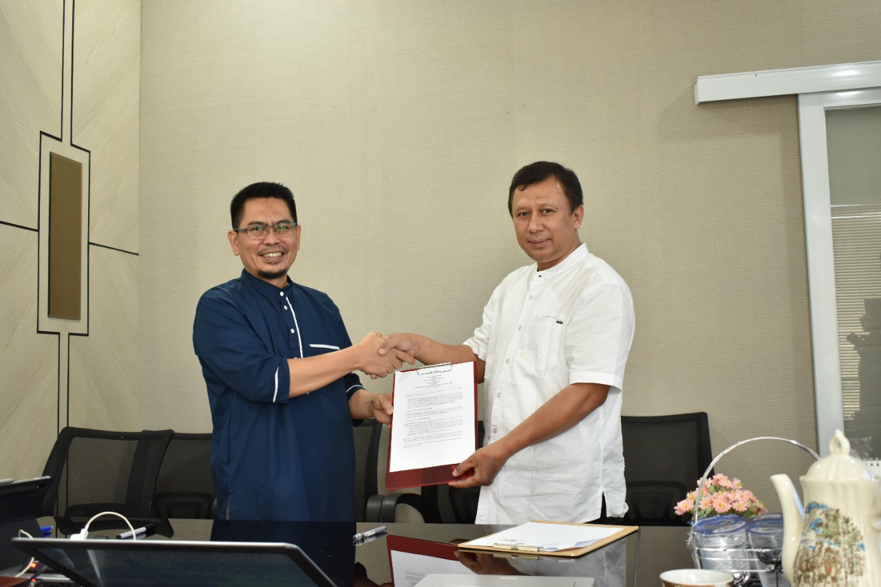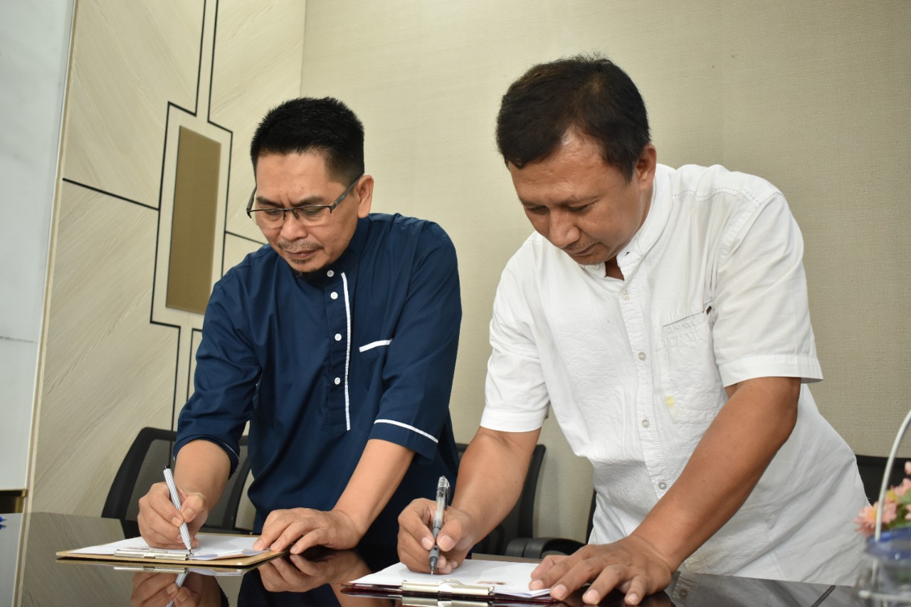 Bapak Sudarmanto (Ketua YAI) dan Bapak Toni Sonjaya (Ketua Yayasan Rumah Kita Berbagi) menandatangani berkas perjanjian kerjasama