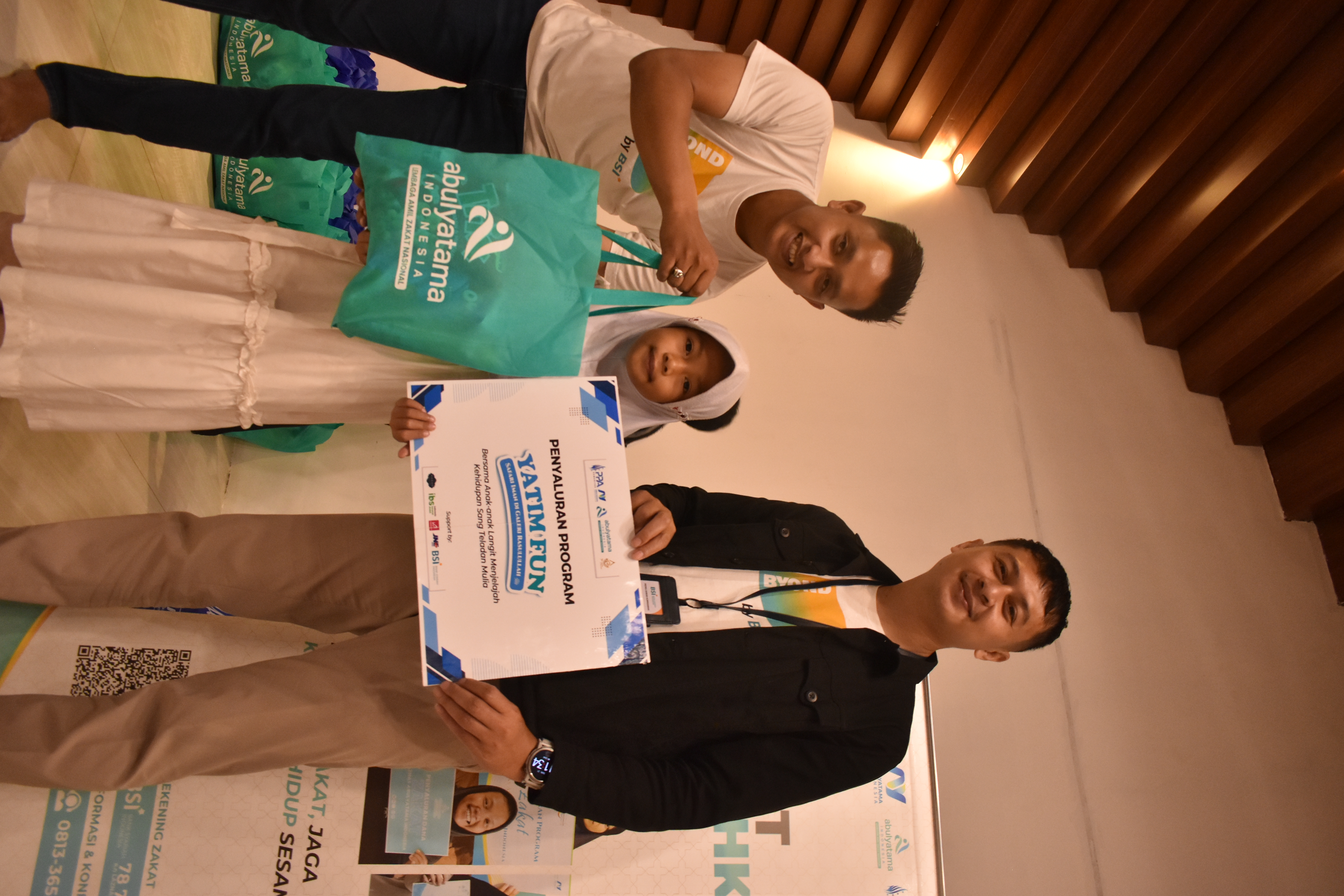 Suasana semakin semarak melalui ice breaking dan kuis interaktif, sebelum kemudian dilanjutkan dengan sambutan dari jajaran manajemen LAZ Abulyatama Indonesia. Pada kesempatan ini juga dilakukan penyerahan simbolis dari mitra pendukung, di antaranya Bank Syariah Indonesia (BSI), JNE, Rabbani, dan Hanan Catering.